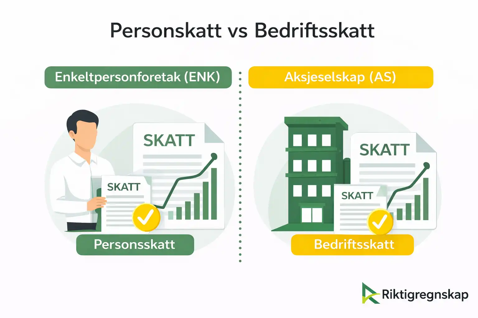 - Din bedriftsstruktur (ENK eller AS) bestemmer hvordan du betaler skatt
